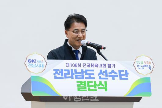 °á´Ü½Ä¿¡´Â ±è¿µ·Ï µµÁö»ç¿Í Àü³²µµÀÇȸ µµÀÇ¿ø, ¼±¼ö․ÀÓ¿ø µî 200¿© ¸íÀÌ Âü¼®ÇÑ °¡¿îµ¥ ¼±¼ö´Ü ¿µ»ó »ó¿µ¿¡ À̾î Âü°¡°èȹ º¸°í, ¼±¼ö´Ü±â ¼ö¿©, ¼±¼ö´ëÇ¥ ¼±¼, °Ý·Á±Ý ¹× üÀ°ÁøÈZ±Ý Àü´Þ ¼øÀ¸·Î ÁøÇàµÆ´Ù.