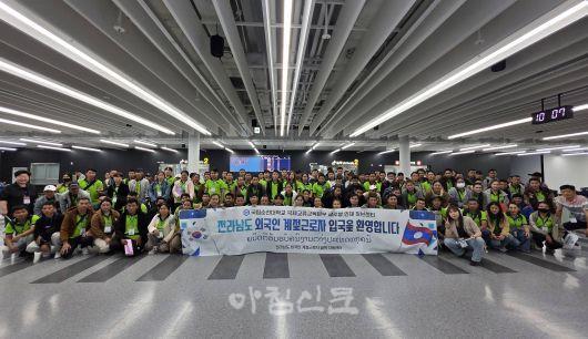 À̹ø ÀÔ±¹ Áö¿øÀº ¿ÀÀü 8½Ã ±èÇØ°øÇ׿¡¼ ½ÃÀ۵ǾúÀ¸¸ç ¿Ü±¹ÀÎ ±Ù·ÎÀÚ ¸í´Ü È®ÀÎ, ¹ö½º ¹èÁ¤, ±×¸®°í ¾ÆÄ§ µµ½Ã¶ô°ú °£½ÄÀ» Á¦°ø ÈÄ Áøµµ±ºÀ¸·Î À̵¿ÇÏ¿´´Ù.