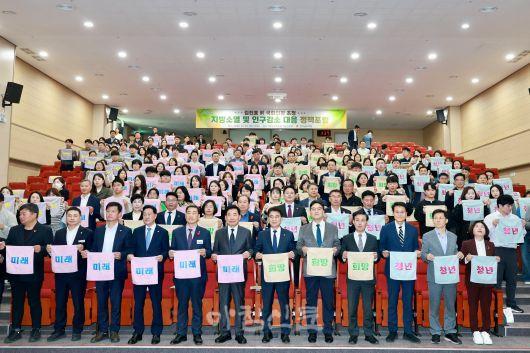 À̾î, ±èÁøÇ¥ Àü ±¹È¸ÀÇÀåÀÌ ¡®Àü³²¿¡¼ ½ÃÀÛÇÏ´Â Àα¸¹®Á¦ ÇØ¹ý¡¯À̶ó´Â ÁÖÁ¦·Î Ư°À» ÁøÇàÇϸç, û³âƯ±¸ ÁöÁ¤°ú °°Àº Á¦µµÀû ´ë¾ÈÀÌ ±¹°¡ Â÷¿ø¿¡¼ ½Ã±ÞÈ÷ ÃßÁøµÅ¾ß ÇÑ´Ù°í °Á¶Çß´Ù.