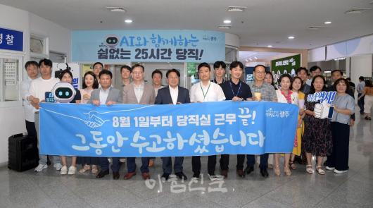 ±¤Áֽô ¾Õ¼ Áö³ÇØ 8¿ù Ư¡¤±¤¿ª½Ã ÃÖÃÊ·Î ´çÁ÷Á¦¸¦ Àü¸é ÆóÁöÇϰí ÀΰøÁö´É(AI) ±â¹Ý ´çÁ÷¹Î¿ø ÀÀ´ë ½Ã½ºÅÛÀÎ ¡®AI ´çÁö±â¡¯¸¦ µµÀÔ, ÇàÁ¤Çõ½ÅÀ» ¼±µµÇß´Ù. ±¤ÁÖÀÇ ¼±µµÀûÀÎ ÇàÁ¤ º¯È°¡ Á¤ºÎ Á¤Ã¥ ÃßÁøÀÇ ±â¹ÝÀÌ µÆ´Ù´Â Á¡¿¡¼ ÇàÁ¤Çõ½ÅÀÇ ¸ð¹ü»ç·Ê·Î Æò°¡¹Þ°í ÀÖ´Ù.
