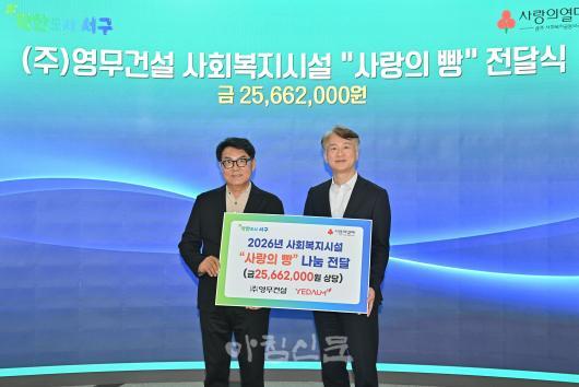 ¹ÚÀçÈ« ¢ß¿µ¹«°Ç¼³ ȸÀåÀº ¡°Áö¿ª»çȸ¿Í ÇÔ²² ¼ºÀåÇØ ¿Â ±â¾÷À¸·Î¼ µµ¿òÀÌ ÇÊ¿äÇÑ ÀÌ¿ôµé¿¡°Ô ÀÛÀº Á¤¼ºÀ» ²ÙÁØÈ÷ ÀüÇÏ°í ½Í¾ú´Ù¡±¸ç ¡°¾ÕÀ¸·Îµµ Áö¼ÓÀûÀÎ »çȸ°øÇå Ȱµ¿À» ÅëÇØ µû¶æÇÑ ³ª´® ¹®È¸¦ È®»êÇØ°¡°Ú´Ù¡±°í ¸»Çß´Ù.