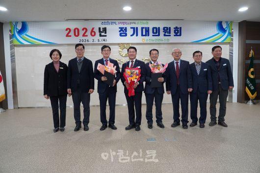À̹ø ´ëÀÇ¿øÈ¸¿¡¼´Â ¼øÃµ³óÇùÀÇ °æÁ¦»ç¾÷À» À̲ø¾î¿Â ¼¸¸¿ø °æÁ¦»óÀÓÀÌ»ç¿Í À̱â¿õ¡¤ÀÌ»ó¿í »ç¿ÜÀ̻簡 Àç½ÅÀÓ µÇ¾ú´Ù. À̹ø Àç½ÅÀÓÀº ÃÖ³²ÈÞ Á¶ÇÕÀå üÁ¦ ¾Æ·¡ Àϰü¼º ÀÖ´Â »ç¾÷ ÃßÁø°ú ³»½Ç ÀÖ´Â °æ¿µ ¼º°ú¸¦ °ÅµÎ¾î¿Â Çö ÀÓ¿ø¿¡ ´ëÇÑ Á¶ÇÕ¿ø°ú ´ëÀÇ¿øµéÀÇ ±íÀº ½Å·Ú°¡ ¹Ý¿µµÈ °á°ú´Ù.