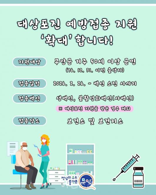 ¹«¾È±º, 50¼¼ ÀÌ»ó ´ë»óÆ÷Áø ¿¹¹æÁ¢Á¾ Áö¿ø È®´ë