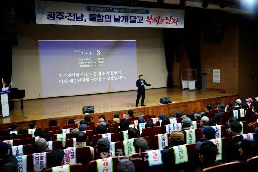 °±âÁ¤ ½ÃÀåÀº ¡°±¤ÁÖÀü³²ÀÇ ÅëÇÕÀº ´Ü¼øÈ÷ ÇàÁ¤±¸¿ªÀ» ÇÕÄ¡´Â Â÷¿øÀ» ³Ñ¾î ½Ã¹ÎÀÇ »îÀÇ ÁúÀ» ¹Ù²Ù´Â ¼±Åá±À̶ó¸ç ¡°ÅëÇÕÀ» ÅëÇØ ¼öµµ±Ç¿¡ ´ëÀÀÇÏ´Â Ãʱ¤¿ª »ê¾÷ Á߽ɵµ½Ã¸¦ ¸¸µé°í, ¡®ÀÎ(In)¼¿ï¡¯ÀÌ ¾Æ´Ñ ¡®ÀÎ(In)±¤ÁÖ, ÀÎ(In)Àü³²¡¯ÀÇ ½Ã´ë¸¦ ¿°Ú´Ù¡±°í °Á¶Çß´Ù.