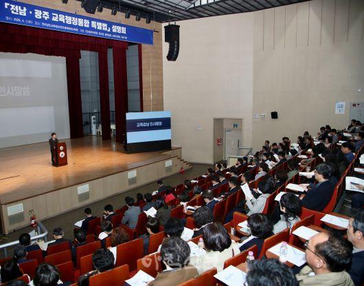 Àü³²±¤ÁÖ±³À°ÇàÁ¤ÅëÇÕÃßÁø´Ü °ü°èÀÚ´Â ¡°À̹ø ¼³¸íȸ´Â Çб³ ÇöÀå °ü¸®ÀÚµé°ú ÅëÇÕÆ¯º°½ÃÀÇ ±³À°ºñÀüÀ» °øÀ¯ÇÏ´Â ¶æ±íÀº ÀÚ¸®ÀÌ´Ù¡±¸ç, ¡°±³À° ÇöÀåÀÇ »ý»ýÇÑ ÀǰßÀ» °æÃ»ÇØ ¸ðµÎ°¡ ¾È½ÉÇϰí ȯ¿µÇÏ´Â ÅëÇÕ ±³À° °øµ¿Ã¼¸¦ ¸¸µé¾î °¡°Ú´Ù¡±°í ¹àÇû´Ù.