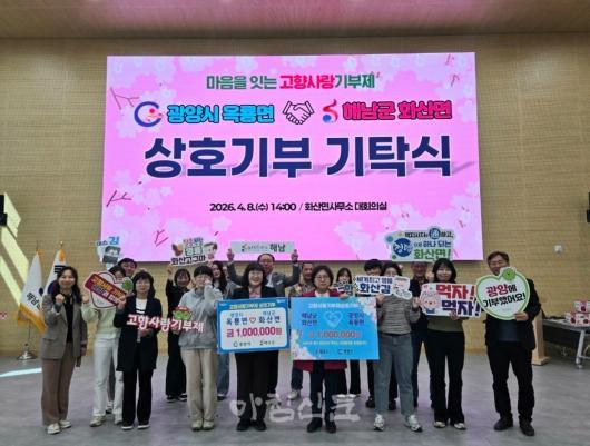 À̳¯ ±âŹ½Ä¿¡´Â ±¤¾ç½Ã ¿Á·æ¸éÀå°ú ÇØ³²±º È»ê¸éÀåÀ» ºñ·ÔÇÑ Âü¿© °øÁ÷ÀÚµéÀÌ ÇÔ²²ÇßÀ¸¸ç, ¾ç ±â°ü ¼Ò¼Ó °øÁ÷ÀÚ 10¸íÀÌ ÀÚ¹ßÀûÀ¸·Î Âü¿©ÇØ ¼·ÎÀÇ Áö¿ª¿¡ °¢ 100¸¸ ¿ø¾¿ ±âºÎÇß´Ù. ÀÌ¾î °íÇâ»ç¶û±âºÎÁ¦ÀÇ ÃëÁö¸¦ °øÀ¯ÇÏ°í µÎ Áö¿ªÀÇ Çù·Â ÀÇÁö¸¦ ´ÙÁ³´Ù.