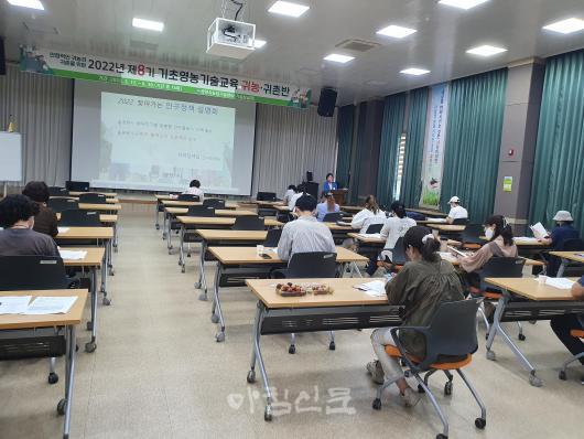 이날 기초영농정착 기술교육 ’귀농귀촌반’ 교육생들에게 2022년 인구정책 추진 방향과 생애주기별 인구시책을 안내하고 은퇴자 활력도시 프로젝트 사업 등을 설명하는 등 수요자 중심의 맞춤형 설명회를 진행해 호평받았다.