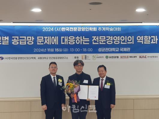 ÀÌÀçÀº ±³¼ö´Â ¡°How does ESG decoupling affect the organizational change capabilities of Korean SMEs? (ESG µðÄ¿ÇøµÀº Çѱ¹ Áß¼Ò±â¾÷ÀÇ Á¶Á÷º¯È¿ª·®¿¡ ¾î¶² ¿µÇâÀ» ¹ÌÄ¡´Â°¡?)¡±¶ó´Â ³í¹®À¸·Î ÃÖ¿ì¼ö»óÀ» ¹Þ¾Ò´Ù. ÇØ´ç ³í¹®Àº ESG µðÄ¿ÇøµÀÌ Çѱ¹ Áß¼Ò±â¾÷ÀÇ Á¶Á÷º¯È ¿ª·®À» ³ôÀÏ ¼ö ÀÖ´Ù´Â ½ÇÁõºÐ¼® °á°ú¸¦ ÅëÇØ Áß¼Ò±â¾÷ÀÇ Áö¼Ó°¡´É°æ¿µ¿¡ À¯¿ëÇÑ ÇмúÀû ¹× ½Ç¹«Àû ½Ã»çÁ¡À» Á¦°øÇÑ °ÍÀ¸·Î Æò°¡¹Þ¾Ò´Ù.