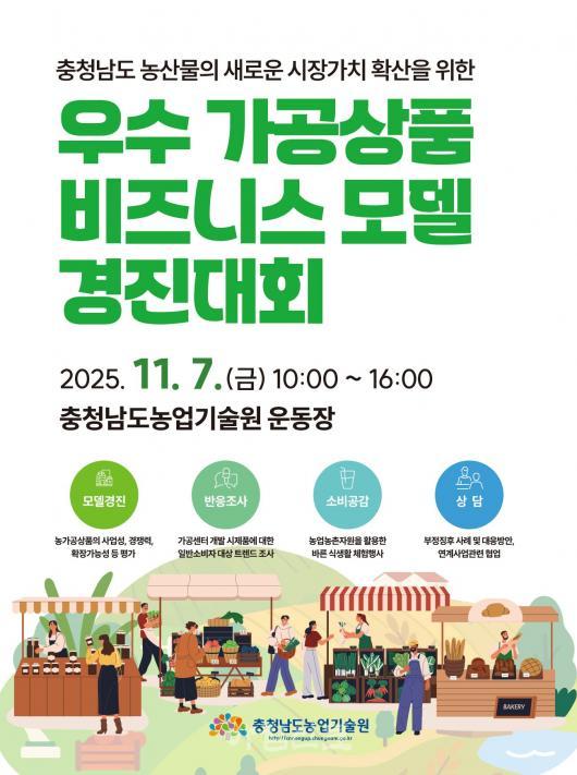 [Ãæ³²/»çȸ]Á¤¼øÀÌ ±âÀÚ = Ãæ³²µµ ³ó¾÷±â¼ú¿øÀº ¿À´Â 11¿ù 7ÀÏ ³ó°¡°ø°æ¿µÃ¼¿Í Àü¹®°¡, ÀÏ¹Ý ¼ÒºñÀÚ µî 300¿© ¸íÀÌ Âü¼®ÇÑ °¡¿îµ¥ ¡®2025³â ¿ì¼ö °¡°ø»óǰ ºñÁî´Ï½º ¸ðµ¨ °æÁø´ëȸ¡¯¸¦ °³ÃÖÇÑ´Ù°í 30ÀÏ ¹àÇû´Ù.