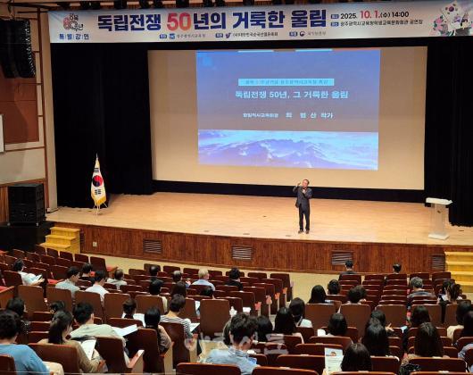 ÀÌÁ¤¼± ±³À°°¨Àº ¡°À̹ø Çà»ç¸¦ ÅëÇØ Çлý, ±³¿ø, ½Ã¹ÎµéÀÌ µ¶¸³¿îµ¿ÀÇ ¼þ°íÇÑ Á¤½ÅÀ» °øÀ¯ÇÏ±æ ¹Ù¶õ´Ù¡±¸ç ¡°¹Ì·¡¼¼´ë°¡ ¿Ã¹Ù¸¥ ¿ª»ç ÀνÄÀ» ¹ÙÅÁÀ¸·Î ¹ÎÁֽùÎÀ¸·Î ¼ºÀåÇÒ ¼ö ÀÖµµ·Ï ¿ª»ç¹Ù·Î¼¼¿ì±â ±³À°À» °ÈÇϰڴ١±°í ¸»Çß´Ù.