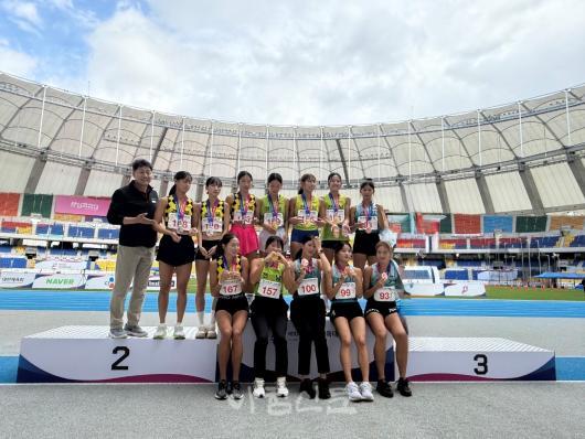 À°»ó¿¡¼´Â ±¤¾çÇÏÀÌÅØ°í ÃÖÁö¿ì(1Çгâ) ÇлýÀÌ 400m, 1600m ¿©ÀÚ°íµîºÎ °èÁÖ1600m ¹Í½º °èÁÖ¿¡¼ °¢°¢ ±Ý¸Þ´ÞÀ» Â÷ÁöÇÏ¸ç ´ëȸ 3°ü¿ÕÀÇ ¿µ¿¹¸¦ ¾È¾Ò´Ù. ƯÈ÷ 400m¿¡¼´Â Áß1ºÎÅÍ 4¿¬ÆÐ ´Þ¼ºÀ̶ó´Â ±â·ÏÀ» ¼¼¿ü´Ù. ÃÖÁö¿ì ÇлýÀº ¿îµ¿Àº ¹°·Ð, Çо÷¿¡¼µµ ÁÁÀº ¼ºÀûÀ» À¯ÁöÇÏ´Â ²ÙÁØÇÔ°ú ¼º½ÇÇÔÀ¸·Î ¸ðµÎÀÇ ±Í°¨ÀÌ µÇ°í ÀÖ´Ù. ¶Ç, ¼¿¹Áö ÇлýÀº Áö³ÇØ¿¡ ÀÌ¾î ¼¼´Ü¶Ù±â¿¡¼ ±Ý¸Þ´ÞÀ» ȹµæÇϸç 2¿¬ÆÐ¸¦ ´Þ¼ºÇß´Ù.
