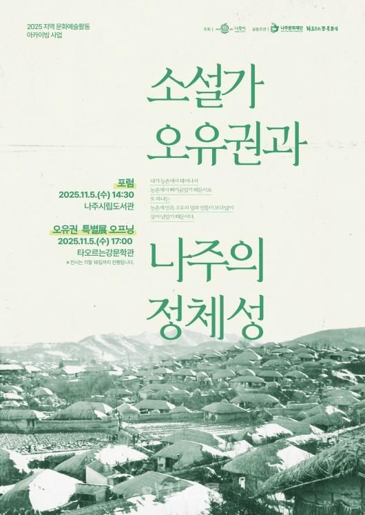 ³ªÁÖ¹®È­Àç´Ü(ÀÌ»çÀå À±º´ÅÂ)Àº ¿À´Â 11¿ù 5ÀÏ ³ªÁֽø³µµ¼­°ü°ú Ÿ¿À¸£´Â°­¹®Çаü ÀÏ´ë¿¡¼­ ¡®¼Ò¼³°¡ ¿ÀÀ¯±Ç°ú ³ªÁÖÀÇ Á¤Ã¼¼º¡¯À» ÁÖÁ¦·Î Æ÷·³, Àü½Ã, ¹®ÇÐ Åõ¾î¸¦ °³ÃÖÇÑ´Ù°í 27ÀÏ ¹àÇû´Ù.