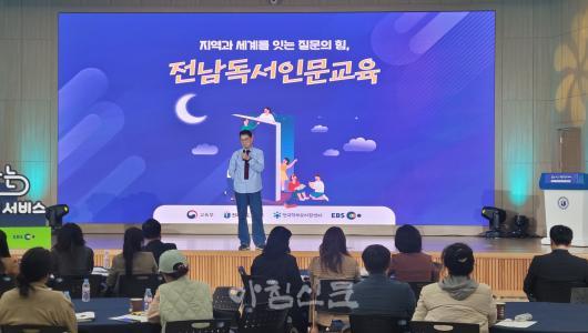 ±è´ëÁß ±³À°°¨Àº ¡°Àü³²µ¶¼­Àι®±³À°À» ÅëÇØ ÇлýµéÀÌ Ã¥À» ±â¹ÝÀ¸·Î Áú¹®ÇÏ°í ¼ºÂûÇÏ´Â ÈûÀ» ±â¸£±æ ¹Ù¶õ´Ù¡±¸ç ¡°±³À°°úÁ¤°ú ¿¬°èÇÑ µ¶¼­¡¤Åä·Ð¡¤±Û¾²±â Á᫐ ¼ö¾÷ÀÌ Çб³ ÇöÀå¿¡ ÀÚ¸®Àâ°í, °¡Á¤¿¡¼­µµ Çкθð´ÔµéÀÌ ÇÔ²² Ã¥ Àб⿡ µ¿ÂüÇØ ÁÖ±æ ¹Ù¶õ´Ù¡±°í ¸»Çß´Ù.