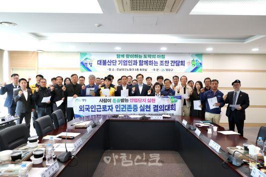 ¿ì½ÂÈñ ¿µ¾Ï±º¼ö¿Í ±â¾÷ ´ëÇ¥µéÀº ¡°»ç¶÷ÀÌ Á¸Áß¹Þ´Â »ê¾÷´ÜÁö, ÇÔ²² ÀÏÇÏ°í ½ÍÀº ´ëºÒ»ê´ÜÀ» ¸¸µé°Ú´Ù¡±´Â ¹®±¸°¡ ´ã±ä °áÀǹ®À» °øµ¿ ³¶µ¶Çß´Ù.