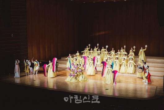 ³ªÁֹ踦 »ó¡ÇÏ´Â ±Ýºû ÇѺ¹À» ÀÔÀº ´Ü¿øµéÀº ±¹¾Ç±â¿Í ¾î¿ì·¯Áø Çѱ¹Àû ¿¬Ãâ·Î ¹«´ë¸¦ °¨µ¿À¸·Î ¹°µé¿´´Ù.