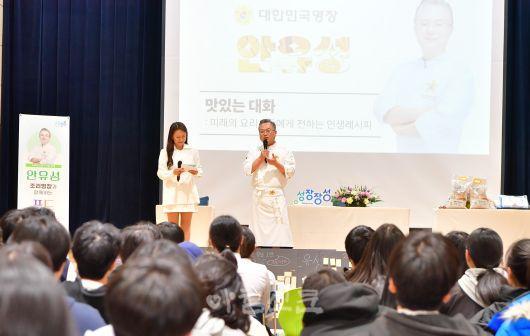¡®¹Ì·¡ÀÇ ¿ä¸®»çµé¿¡°Ô °Ç³×´Â Àλý ·¹½ÃÇÇ - ¸ÀÀÖ´Â ´ëÈ¡¯¶ó´Â Á¦¸ñÀ¸·Î ¿¸° À̹ø Çà»ç¿¡¼ ¾ÈÀ¯¼º ¸íÀåÀº ¿ä¸®»ç·Î ¼ºÀåÇϱâ±îÁöÀÇ °úÁ¤°ú ¡®¸íÀ塯 Īȣ¸¦ ¾ò±â±îÁö ³ë·ÂÇØ ¿Â ³ª³¯µé¿¡ ´ëÇÑ À̾߱⸦ ¼ÖÁ÷´ã¹éÇÏ°Ô µé·ÁÁá´Ù. ÇлýµéÀÇ Áú¹®¿¡ Áï¼®À¸·Î ´äÇÏ´Â ½Ã°£µµ °¡Á³´Ù.