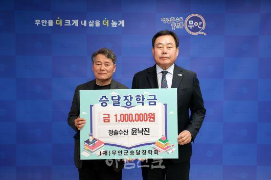 ¶ÇÇÑ ¹«¾È±º Çö°æ¸é¿¡ À§Ä¡ÇÑ Ã»¼Ö¼ö»êÀÇ À±³«Áø ´ëÇ¥´Â Áö³ 2010³âºÎÅÍ ¸Å³â ¿¬¸» ½Â´ÞÀåÇбÝÀ» ²ÙÁØÈ÷ ±âÅ¹ÇØ¿À°í ÀÖÀ¸¸ç, À̹ø ±âŹÀ» Æ÷ÇÔÇØ ÃÑ 1õ6¹é¸¸ ¿øÀÇ ÀåÇбÝÀ» Àü´ÞÇØ Áö¿ª»çȸ ³ª´® ¹®È È®»ê¿¡ ±Í°¨ÀÌ µÇ°í ÀÖ´Ù.