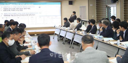 ±è´ëÁß Àü³²±³À°°¨Àº ¡°¸ñÆ÷¡¤¹«¾È¡¤½Å¾ÈÀÇ Çù·ÂÀº Áö¿ª ¿©°ÇÀ» ¹Ý¿µÇÑ Çб³Áö¿ø Á᫐ ±³À°Áö¿øÃ» ±Ç¿ª Çù·Â ¸ðµ¨ÀÇ Ãâ¹ßÁ¡¡±À̶ó¸ç, ¡°¾ÕÀ¸·Îµµ Çб³ ÇöÀå¿¡ ½ÇÁúÀûÀ¸·Î µµ¿òÀÌ µÇ´Â Çù·Â °úÁ¦¸¦ Áß½ÉÀ¸·Î ±³À°Áö¿øÃ» °£ ¾÷¹«Çù·ÂÀÌ À̾îÁö±æ ±â´ëÇÑ´Ù¡±°í ¹àÇû´Ù.