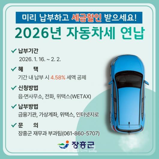 ÀåÈﱺ, ¡°2026³â ÀÚµ¿Â÷¼¼ ¿¬³³ÇÏ°í °øÁ¦¹ÞÀ¸¼¼¿ä¡±