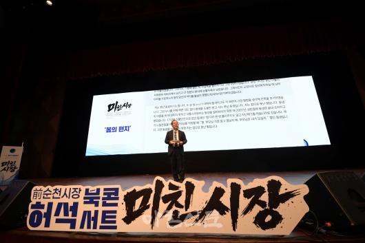 ºÏÄܼƮ´Â 25ÀÏ(ÀÏ) ¿ÀÈÄ 4½Ã ±¹¸³¼øÃµ´ëÇб³ ¿ì¼®È¦¿¡¼ ¿·ÈÀ¸¸ç, Çà»ç ½ÃÀÛ Àü ÀÔ±¸¿¡¼ºÎÅÍ ¹®Àü¼º½Ã ÀÎÆÄ·Î ÀÎÇÏ¿© ½Ã¹ÎµéÀÌ ¸ô¸®¸ç Á¼®ÀÌ °¡µæ á´Ù. Çã Àü ½ÃÀåÀº À̳¯ ÀÇÀü Áß½ÉÀÇ ±âÁ¸ Á¤Ä¡ Çà»ç °üÇàÀ» ±ú°í ³»ºó¼®°ú Ãà»ç¸¦ Àü¸é »ý·«Çß´Ù. ±×´Â ¡°¿À´Ã ÀÌ ÀÚ¸®¿¡ ¿Â ºÐµé ÇÑ ºÐ ÇÑ ºÐÀÌ ÁÖÀΰø¡±À̶ó¸ç ½Ã¹Î Á᫐ Çà»çÀÇ ÃëÁö¸¦ ºÐ¸íÈ÷ Çß´Ù.