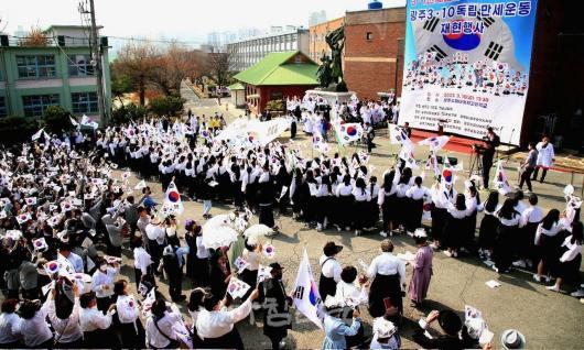 ƯÈ÷ ½Ã¹Îµé°ú ÇлýµéÀº ¼öÇǾƿ©°í¿¡¼ Ãâ¹ßÇØ 3‧1ÀýÀ» ±â³äÇØ ¼±º¸ÀÌ´Â ¹æÅº¼Ò³â´ÜÀÇ ¾Æ¸®¶ûÀ» ÇÔ²² ºÎ¸£¸é¼, µ¶¸³¿îµ¿À» ¸ðÀÇÇß´ø ³²±ÃÇõ Àå·Î ÀÚÅà ÅÍ¿Í ¿¾ ¼þÀÏÇб³ ÅÍ µîÀ» °ÅÃÄ ¾ç¸²¿À°Å¸®·Î ÇàÁøÇÑ´Ù.