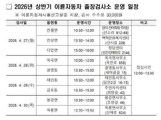 ±¤¾ç½Ã, 2026³â »ó¹Ý±â ÀÌ·ûÀÚµ¿Â÷ ÃâÀå°Ë»ç¼Ò ¿î¿µ