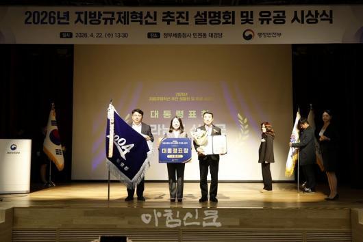 ½Å¾È±ºÀº 22ÀÏ Á¤ºÎ¼¼Á¾Ã»»ç¿¡¼ ¿¸° ¡®2026³â Áö¹æ±ÔÁ¦Çõ½Å ÃßÁø ¼³¸íȸ ¹× À¯°ø ½Ã»ó½Ä¡¯¿¡¼ ´ëÅë·É ǥâÀ» ¹Þ¾Ò´Ù°í ¹àÇû´Ù. À̹ø ¼ö»óÀº Áö¿ª ÇöÀå¿¡¼ ºÒÇÕ¸®ÇÑ ±ÔÁ¦¸¦ Àû±Ø ¹ß±¼¡¤°³¼±ÇØ Áֹΰú ±â¾÷ÀÇ ºÒÆíÀ» ÇØ¼ÒÇÑ °ø·Î¸¦ ÀÎÁ¤¹ÞÀº µ¥ µû¸¥ °ÍÀÌ´Ù.