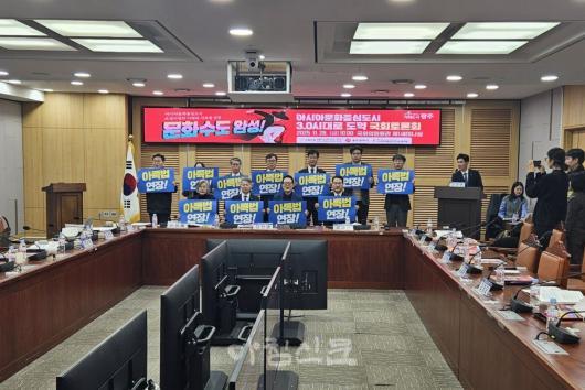Åä·Ðȸ¿¡ Âü¼®ÇÑ ±¹È¸ÀÇ¿ø°ú Åä·ÐÀÚ, Âü¼®ÀÚµéÀº ¡°¹Î‧°ü‧Á¤ÀÌ ÈûÀ» ¸ð¾Æ 2028³â °èȹ Á¾·á¸¦ ¾ÕµÐ ¾ÆÆ¯¹ýÀ» °³Á¤ÇÏ°í ±¹°¡ Ã¥ÀÓÀ» °ÈÇØ ±¤ÁÖ°¡ ´ëÇѹα¹ ¹®ÈºÐ±ÇÀÇ »ó¡µµ½ÃÀÌÀÚ Áö¼Ó°¡´ÉÇÑ ¾Æ½Ã¾Æ¹®ÈÁ߽ɵµ½Ã 3.0½Ã´ë·Î µµ¾àÇÒ ¼ö ÀÖµµ·Ï ÇÔ²² ³ë·ÂÇÏÀÚ¡±°í ¶æÀ» ¸ðÀ¸¸ç ¼ÕÆÖ¸» ÆÛÆ÷¸Õ½º¸¦ ¼±º¸¿´´Ù.