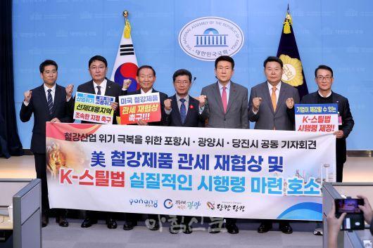 ±ÇÇ⿱ ±¹È¸ÀÇ¿ø(Àü³² ±¤¾ç½Ã), ÀÌ»óÈÖ ±¹È¸ÀÇ¿ø(°æºÏ Æ÷Ç׽à ³²±¸ ¿ï¸ª±º)°ú 3°³ µµ½Ã ½ÃÀå, »ó°øÈ¸ÀÇ¼Ò È¸ÀåÀÌ ÇÔ²² 12ÀÏ ¼­¿ï ±¹È¸ ¼ÒÅë°ü¿¡¼­ °øµ¿ ±âÀÚȸ°ßÀ» ¿­°í, ¡®¹Ì±¹ ö°­Á¦Ç° °ü¼¼ ÀçÇù»ó ¹× K-½ºÆ¿¹ý ½ÇÁúÀûÀÎ ½ÃÇà·É ¸¶·ÃÀ» À§ÇÑ ¿©‧¾ß‧Á¤ ¹üÁ¤ºÎ Â÷¿øÀÇ °øµ¿´ëÀÀ È£¼Ò¹®¡¯À» ¹ßÇ¥Çß´Ù.