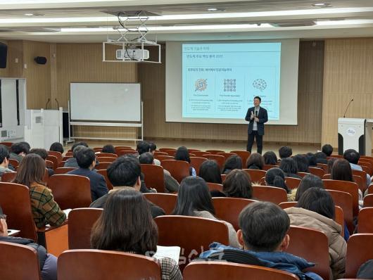 À̳¯ °¿¬¿¡´Â »ï¼ºÀüÀÚ ¹ÝµµÃ¼ ºÎ¹®¿¡¼ 20¿© ³â°£ ±Ù¹«ÇÑ ±è¿ëÇö Àü ¼ö¼®¿£Áö´Ï¾î°¡ °»ç·Î ³ª¼, ¹ÝµµÃ¼ »ê¾÷ ±¸Á¶¿Í ±Û·Î¹ú µ¿Çâ, RE100 ¹ÝµµÃ¼ »ê´ÜÀÇ Çʿ伺°ú ÁöÀÚüÀÇ ¿ªÇÒ µîÀ» ¼³¸íÇß´Ù.