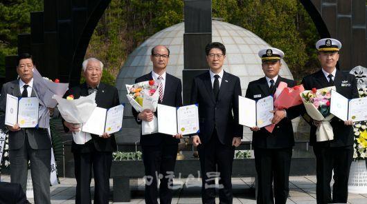 À̳¯ ±â³ä½Ä¿¡¼± ¾Èº¸ÀÇ½Ä Çâ»ó¿¡ ±â¿©ÇÑ À¯°øÀÚ·Î ÇØ±º Á¦3ÇÔ´ë À庴 3¸í°ú ´ëÇѹα¹»óÀ̱º°æÈ¸ ȸ¿ø 2¸í¿¡°Ô ǥâÀÌ ¼ö¿©µÆ´Ù.